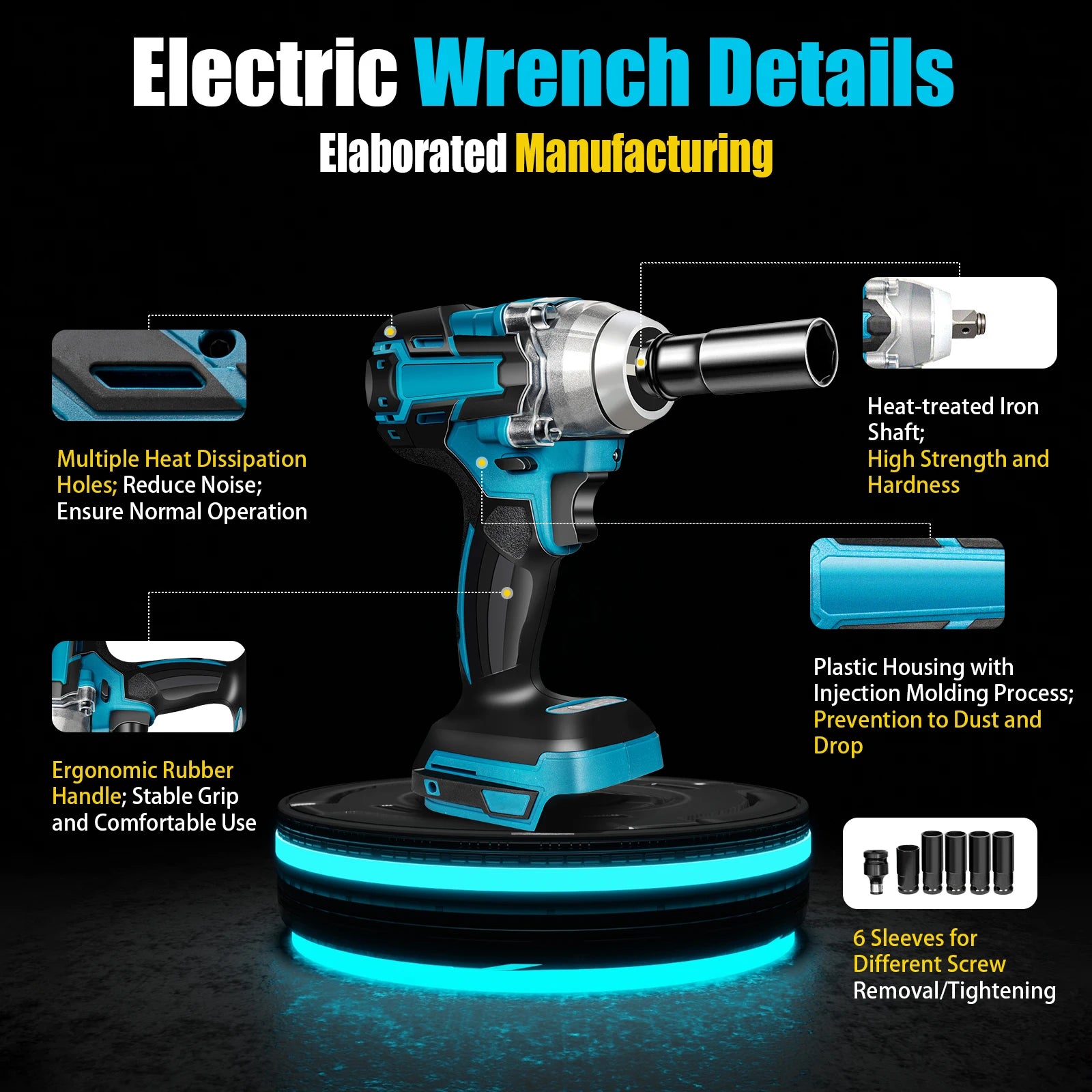 Six MatchingSleeves: Six different sleeves can be used interchangeably for loosening or tightening nuts of different sizes, making it ideal for a wide range of scenarios.